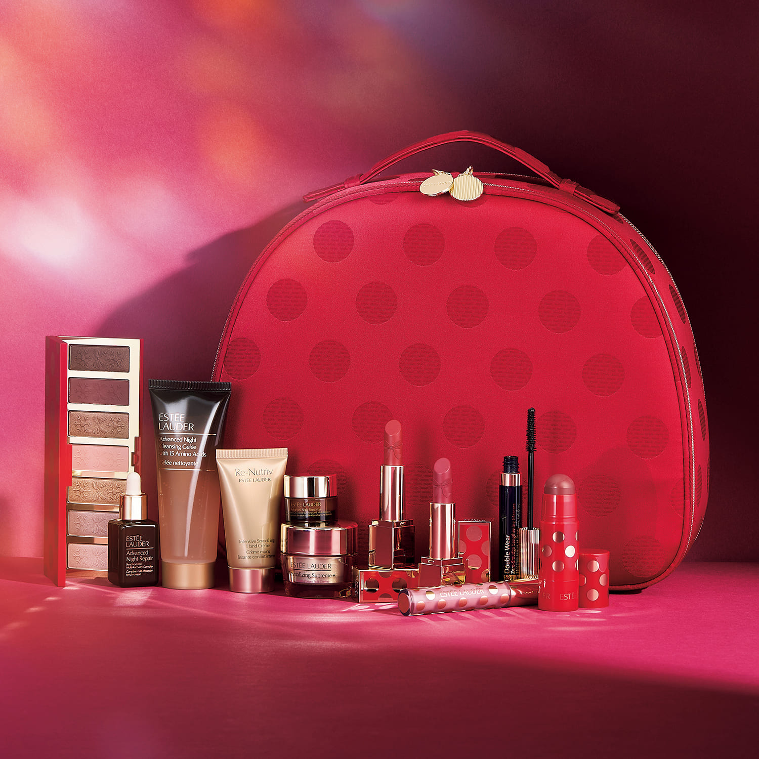 大注目のメークアップコレクションは今年も変わらぬ華やかさ。名品「アドバンスナイト リペア」の美容液をはじめハンドクリーム、7色のアイシャドウパレット、限定チークやリップなどスキンケアからメークアイテムまで全11品が贅沢にイン。この時期だけしか手に入らない豪華なバッグ付きのアイテムをお供に、ホリデーを満喫して。メークアップ コレクション 2025 ¥19,800(エスティ ローダー)
