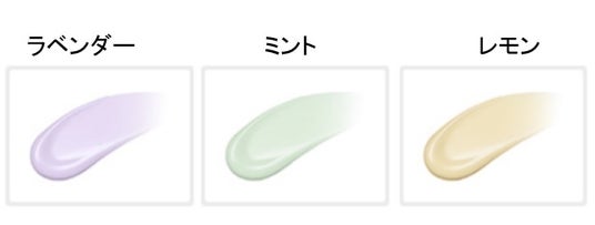 色調展開は3色。ラベンダーはくすみや色ムラ、ミントは赤みやニキビ跡、レモンはクマ・シミそばかすをカバー。肌悩みにあわせてぴったりの1色が選べます。