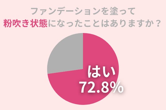 アンケート調査の結果、全体の72.8%もの女性が、ファンデーションを塗って、このような粉吹き肌になったことがあると明らかになりました。