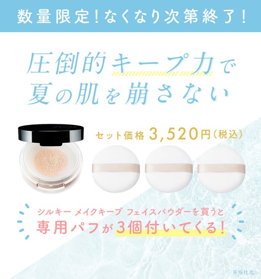 公式サイト:「シルキー メイクキープ フェイスパウダー」限定パフセット特設ぺージ▼