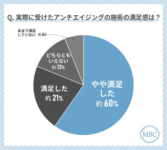 「実際に受けたアンチエイジングの施術メニューに関して、満足感を感じましたか?」とアンケート調査した結果、