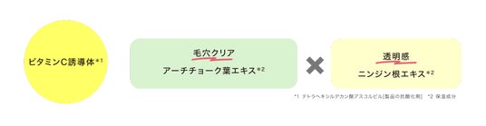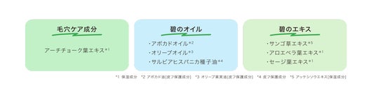 ビタミンC誘導体*1や、毛穴・透明感をケアするアーチチョーク葉エキス*2、ニンジン根エキス*2を配合。メイクを落とすと同時に、毛穴汚れやくすみ*3にもアプローチします。