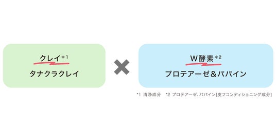 細かな汚れまで吸着する“タナクラクレイ*4”と、タンパク質を分解する“酵素”を2種*5配合。クレイ*6×W酵素*5の働きで、メイクだけでなく毛穴の汚れ、角栓、古い角質までしっかり洗い流します。