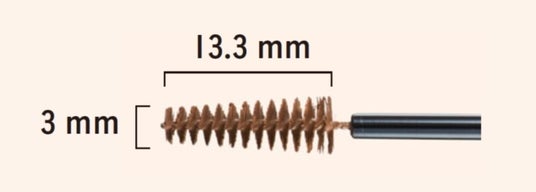 ブラシの最短直径は3mm。サイズも小さくすることで、肌に沿うように生えている眉毛も根元から立ち上げて、1本1本をとかしながら毛先まで色づけます。肌に液が付きにくく、眉頭から眉じりまで思い通りの毛流れにスタイリングすることが可能です。