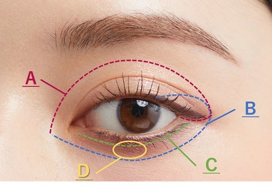 A.繊細な輝き感のある肌なじみのよいピンクのアイシャドウを、アイホール全体に塗布します。
