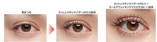カール固定ワックス配合。カールの角度を固定し、上向きまつ毛をキープ。