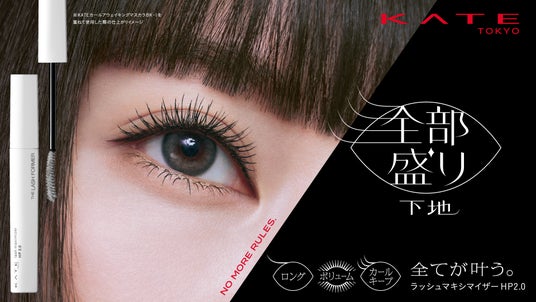 グローバルメイクアップブランド『KATE(ケイト)』は、カールキープも、ロングも、ボリュームも全部叶えるマスカラ下地「ラッシュマキシマイザーHP2.0」を2024年7月20日(土)より発売いたします。(2024年7月16日(火)より順次配荷スタート。)また、繊細ロングに盛れるマスカラ下地「ラッシュマキシマイザーHP2.0 シークレット」や、毛穴をカバーしながら白光トーンアップする化粧下地「スノースキンベース」、超極細ラインが安定して細かく描ける「スーパーシャープライナーEX4.0(ショート筆)レフィル」など、多数新商品も同日発売いたします。