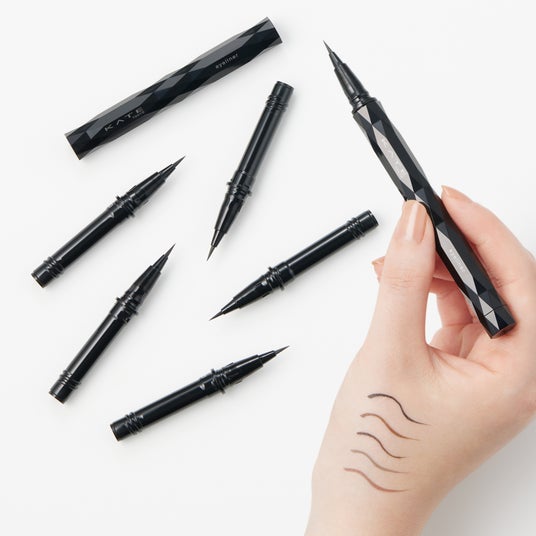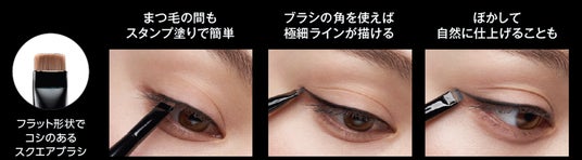 スクエアブラシでラインが自由自在!泥質感の濃密ラインがスムーズに描けて、ピタッと密着。