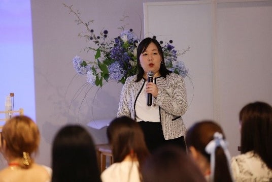 続いて、全薬販売株式会社 信頼性保証学術部 学術課 蒔田 絵里が登壇。汗や紫外線などによる肌悩みが増える夏に向けて、アルージェの製薬会社ならではの処方から生まれたメイク落としや洗顔料を用いながら、敏感肌の方々に寄り添った洗顔のコツやポイントをレクチャーしました。蒔田は、「夏は紫外線やエアコンなどで乾燥しやすい時期」と語り、「一日過ごして真っ先にするスキンケアが洗顔だと思いますので、肌にそれ以上のダメージを与えないためにも洗顔には気を配ってほしいです」とコメント。