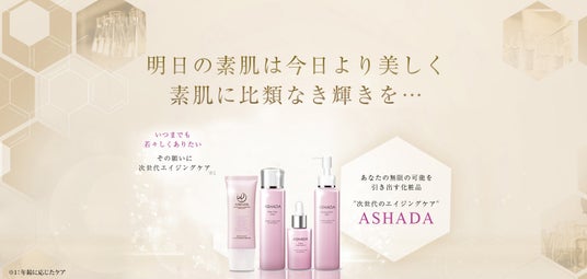 補うではなく呼び覚ます肌が持つ本来の美しさへ。肌には本来、自ら美しくなろうとする「力」=「美肌力」が備わっています。ASHADAシリーズはその眠った「力」を目覚めさせ、解き放つことで、明日も、そして10年後も輝き続ける美しい肌へ生まれ変わってほしい。それが私たちの想いであり、願いです。