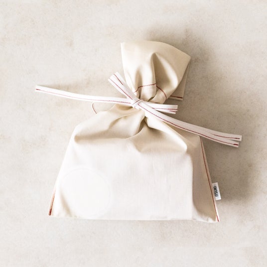 贈り物に、紙ではなくファブリックのラッピングを選ぶとより一層特別感が出るけれど、そのラッピングを残していても他に使い道がないことが気になり誕生したギフトバッグ。 もらった後も使い道がある、ラッピングで終わらないというのが2wayミニギフトバッグの特徴です。