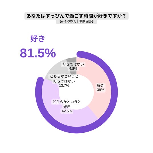 調査の結果、全体の8割以上の人が「すっぴんで過ごす時間が好き」と回答し、すっぴんをポジティブに捉えていることがわかりました。