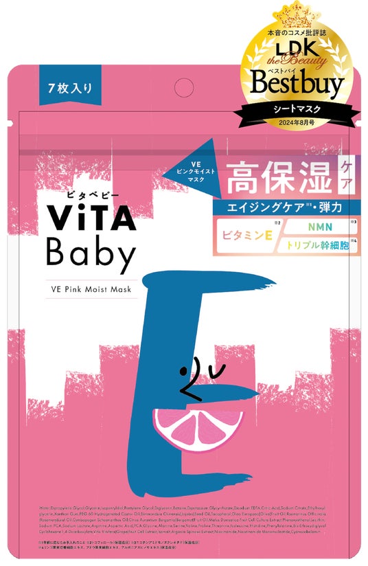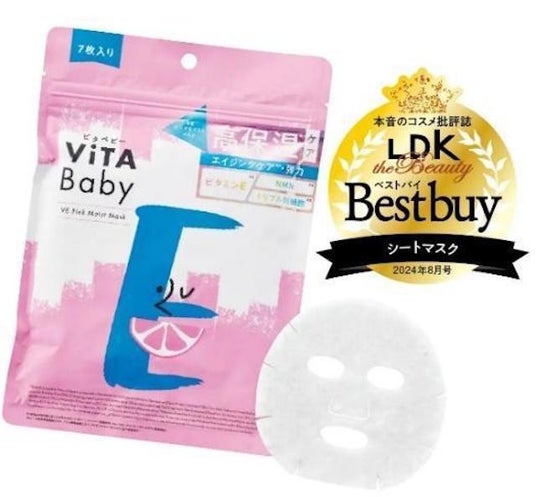 3種のビタミンで毎日のスキンケアをアップグレードする化粧品ブランド「ViTA Baby(ビタベビー)」のシートマスク「VEピンクモイストマスク(7枚入り税込770円)」が、コスメを本音で評価する雑誌「LDK the Beauty」(株式会社晋遊舎)の2024年8月号特別企画「最新シートマスクABC判定60」にてベストバイを受賞しました。ビタベビー商品は、全国のドラッグストアやディスカウントストアの他、ViTA Babyブランドサイト内ショップ、Amazon公式ショップ、Qoo10公式ショップでご購入いただけます。