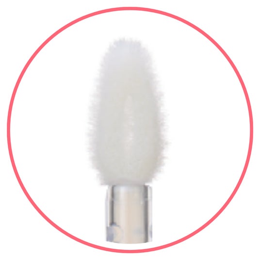 先細で唇のフチにも塗りやすいしずく型チップ