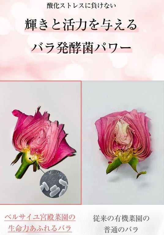 ヴェルサイユ宮殿の「バラ発酵菌」と植物性レチノール「バクチオール」を配合
