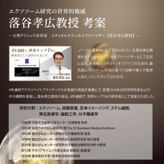 ■落谷孝広教授考案の独自プロトコールにより製法されたイースぺシャル オリジナル『フリーズドライ・エクソソーム』を配合。