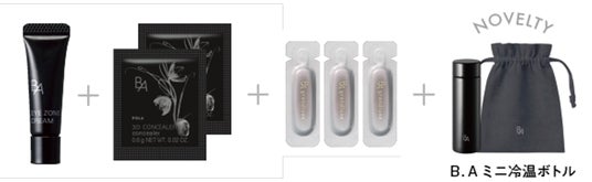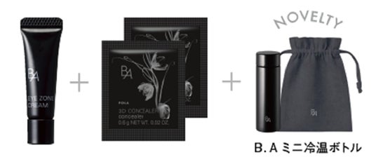 イベント期間中、B.A メークアイテムを含む税込22,000円以上お買上げの方に、B.A アイゾーンクリーム 2g、B.A 3D コンシーラー各色 1包ずつ、イベント限定ノベルティのB.A オリジナル冷温ボトル(非売品)をプレゼント。