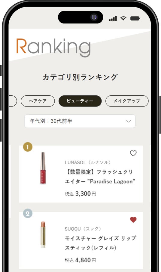 現在のカテゴリ別ランキングに加え、年代別の人気ランキングを新設。各アイテムの機能性やカラー、テクスチャーなど、年代ごとに変化する人気アイテムの情報を集積することで、お客様一人ひとりに合った 商品選びの参考にしていただけます。