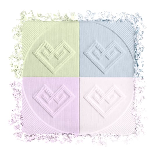 グリーンが赤味を、パープルが黄味と茶ぐすみを補正して、淡いブルーが透き通るような明るい透明肌へ導くパステルハーモニー