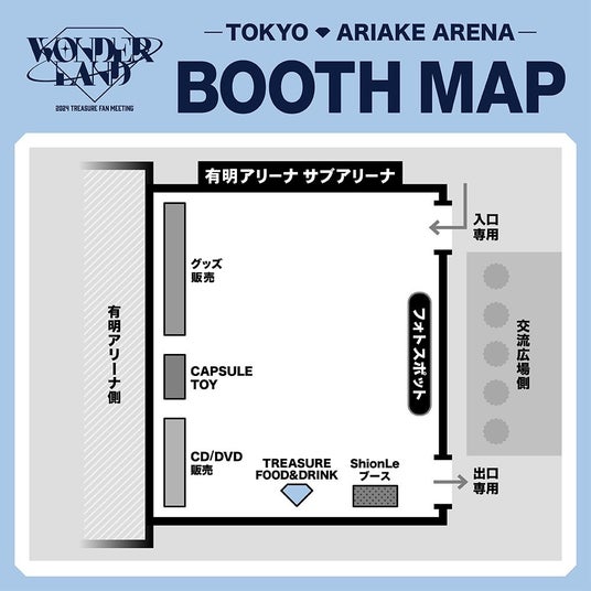 ブース出展は、2024年8月3日(土)、8月4日(日)の有明アリーナでの公演2日間限定。会場では有明アリーナ会場限定のフォトカード、ショッピングバックなどの購入者特典やオリジナルカプセルマシンをご用意します。またMUST-BUYキャンペーンとし韓国プリクラ<ShionLe x TREASURE>限定フレームでの撮影も可能。