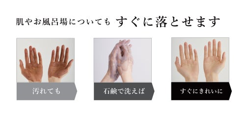 タール系色素配合やジアミン系処方ではないので、肌やお風呂場についてもすぐに落としやすい。