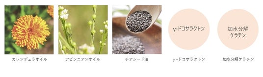 ◎うるおい美容オイル成分と肌を整える植物エキス成分