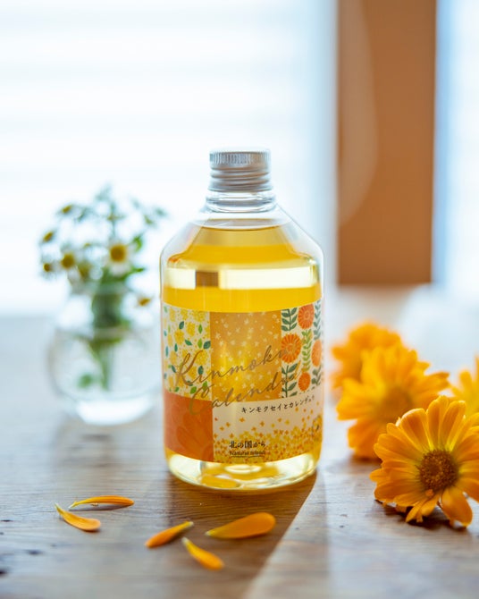 そしてふたつめは、カレンデュラオイルを使用したヘアオイルの秋限定の香り、「カレンデュラのいたわりヘアオイル 金木犀の香り」。植物オイルを配合し、24時間ダメージケアが可能と人気のヘアオイルです。