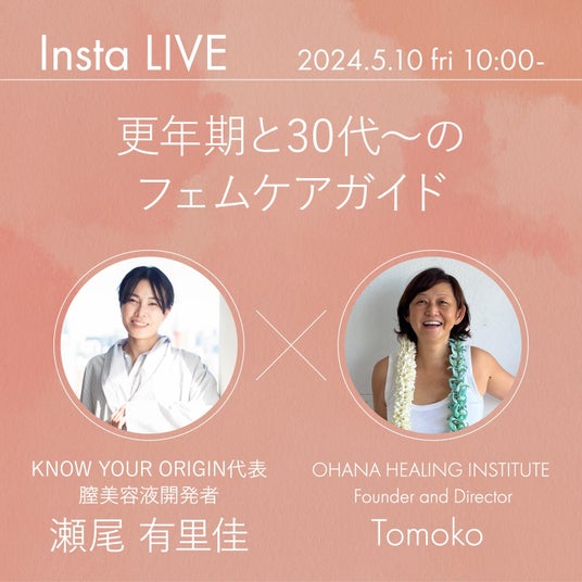 ハワイ・カイルアにあるOHANA HEALING INSTITUTEの創設者、Tomoさんを迎えてのコラボライブはやわらかな日差しが差し込むカイルアのサロンからお届け。 LAで18年、ハワイで16年過ごし、アロマセラピースクールを運営するTomoさんとは、 ご自身の闘病体験やアロマセラピーと出会うまでの道のりを交えながら、女性の体が大きく変化する30代~更年期時期の自分との向き合い方、体を理解することの大切さを、瀬尾と共に語り合いました。