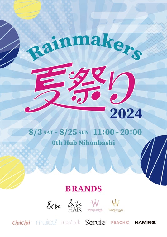 「CipiCipi」をはじめとする、Rainmakersの全8ブランド合同のコラボレーションポップアップストアが期間限定でオープン!「夏祭り」をテーマに各ブランドがブースを出展。「グリッターイルミネーションライナー S」の先行販売や、豪華景品があたるキャンペーンもご用意しておりますので、ぜひ足をお運びください!
