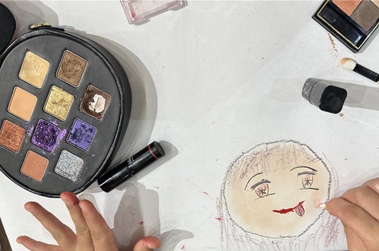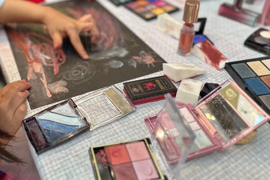 コスメが画材として、子どもたちの想像力により素敵なアートに生まれ変わります。
