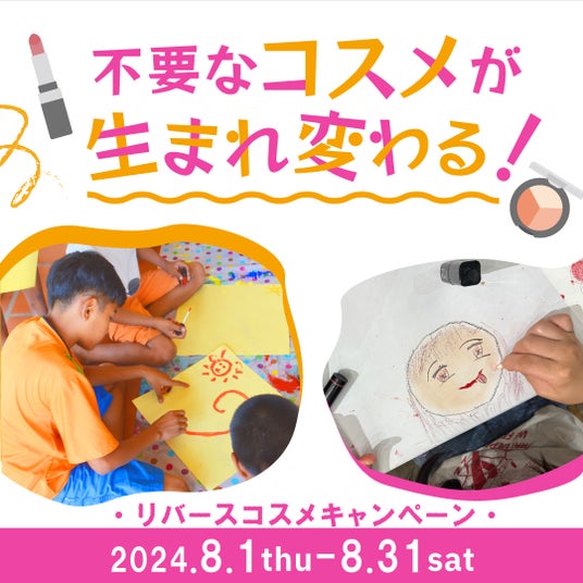 「リバースコスメキャンペーン」は、ご自宅で不要になったコスメを、世界の子供たちへ絵を描く画材として寄付させていただくキャンペーンです。