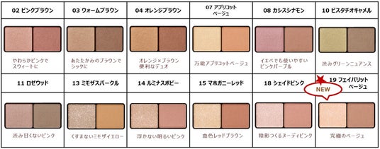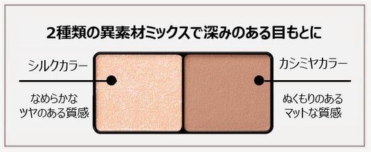 ーなめらかなツヤを放つ 「シルクカラー 」と、ぬくもりのあるマットな 「カシミヤカラー 」 の2種をセット。 ー肌なじみのよいゴールドパール配合