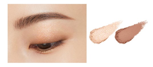 赤みと黄みのバランスにこだわった、万人に最適なニュートラルなマットベージュと、ブルベになじむほんのりピンクに輝くラメの組み合わせ。