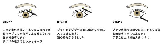 「コメヌカロウ」「カルナウバロウ」「イソステアリン酸デキストリン」といったカールキープ成分を配合。膜を形成する為、カールが落ちにくく美しいまつげをキープします。