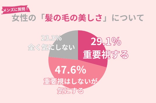 調査の結果、76.7%の男性が女性の『髪の毛の美しさ』を「重要視するor気にする」ことが明らかになりました。