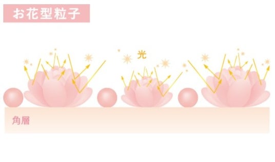 光の輝きで美肌に導く「お花型粒子」サイズも形もひとつひとつ異なるお花型の粒子が、肌表面の凹凸にフィット。