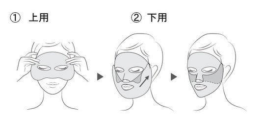 2.下用を取り出して、両端を持ち、口の位置を合わせて、引き上げながら空気が入らないようにフェイスラインに密着させます。