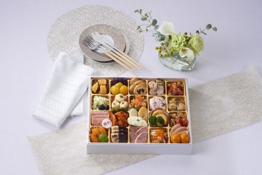 選び抜かれた肉・魚介類のほか、ビタミンや繊維質がとれる美容や健康を意識した”美的食材”を詰合せました。一部の具材にはすっきりとした甘さのオリゴ糖を使用するなど、調味料にもこだわり上品な味わいに仕上げました。伝統的な和のおせち食材は押さえつつ、洋・中のほか伊・仏風の味付けまで。また、前菜・メイン・デザートまで揃いコース料理のように楽しめるラインアップです。