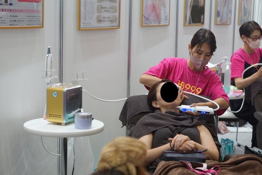 鍼を刺さない美容鍼「エアバリ」ご体験の様子。