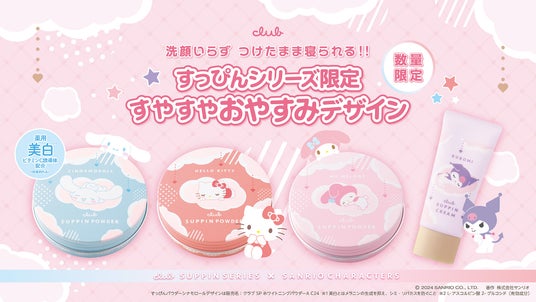 株式会社クラブコスメチックス(本社・大阪市 代表取締役社長:中山ユカリ)は、クラブ すっぴんシリーズより世界中で愛されるサンリオキャラクターズのシナモロール、ハローキティ、マイメロディ、クロミと初コラボ!2024年9月1日(日)よりパウダー、クリームの4種を数量限定発売いたします。