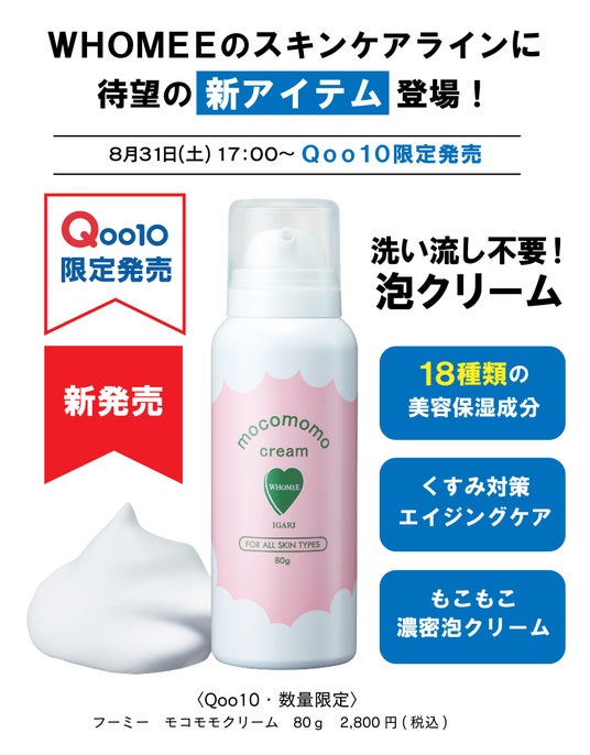株式会社Nuzzle(本社:東京都港区、代表取締役:近藤和裕、以下 Nuzzle)は、ヘア&メイクアップアーティスト“イガリシノブ”がプロデュースするコスメブランド【WHOMEE】から、『モコモモクリーム 80g (2,800円<税込>)』を2024年8月31日(土)17:00~Qoo10にて数量限定で発売します。