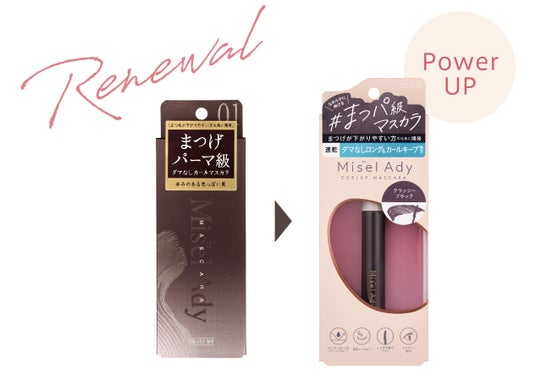 2021年11月に、「まつげが下がりやすい人」のためにカールアップ効果に特化をして発売、ご好評いただき、新色や限定色を追加して参りました。2023年9月には下まつげ用マスカラを発売し、ラインアップを拡充し、この度「ミゼルエディ カールアップマスカラ ロング」として、よりロング効果とカールキープ力を備えた処方にリニューアルいたします。