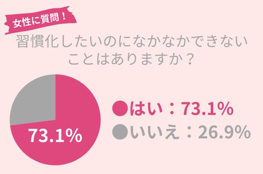 調査の結果、73.1%の女性が習慣化したいのになかなかできないことがあることがわかりました。目標を達成するには、日々の習慣(努力)がかかせません。