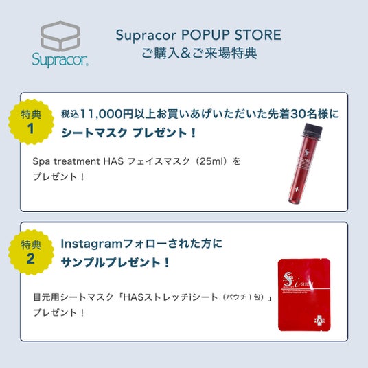 11,000円(税込)以上お買い上げいただいた先着30名様に、先進美容成分配合のHASフェイスマスクをプレゼントいたします。