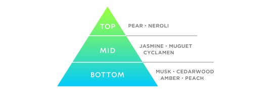 みずみずしくフルーティーなペアーと爽やかなネロリをトップに、華やかなジャスミンや透明感のある花々の香りをブレンド。ベースには深みのあるムスクやアンバーを合わせることで、香水のような高級感のあるウォータリーフローラル調の香りに仕上げました。