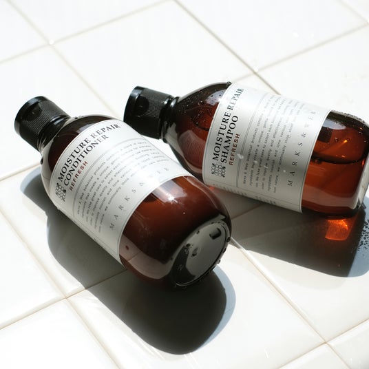 ヘアケアアイテム乾燥によるパサつきやうねり・くせ毛など髪の悩みはいろいろ。マークスアンドウェブのヘアケアでは、多くの方が抱えている悩みに着目し、2つのシリーズをご用意しました。「モイスチャーリペアシリーズ」はダメージを補修し、しっとりとまとまりのある髪に。「スカルプバランシングシリーズ」は、頭皮環境を整え、さらっとした指通りの髪に整えます。