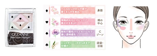 「セザンヌ パールグロウハイライト」はひと塗りするだけでまるで内側から発光したような“面で光る”ツヤ感を演出すると人気のアイテム。