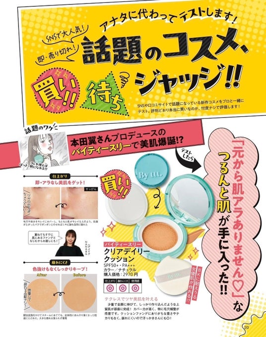 本田翼が商品企画から完全プロデュースしたビューティーブランド〈By ttt.(バイティースリー)の「クリアデイリークッション」が、コスメを本音で評価する人気美容情報誌「LDK the Beauty」(2024年8月22日発売 10月号)ファンデーション部門(クッション)にてA評価を受賞いたしました。