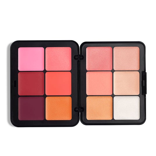 6色のチークカラーと6色のハイライターを組み合わせたユニークな12色。頬に色と光を与えるプレイフルなパレットで輝きと立体感のある顔立ちを演出します。シルキーでブレンディングしやすいテクスチャーが、内側からにじみ出るような自然な血色感から、視線を奪う主役級のまばゆいハイライトまで、あらゆるルックを実現させます。