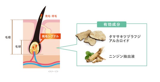 大人女性の髪は、ハリ・コシ不足で細く、抜けやすいもの。「タマサキツヅラフジアルカロイド」と「ニンジン抽出液」が、毛根に働きかけ、抜け毛・薄毛を予防。